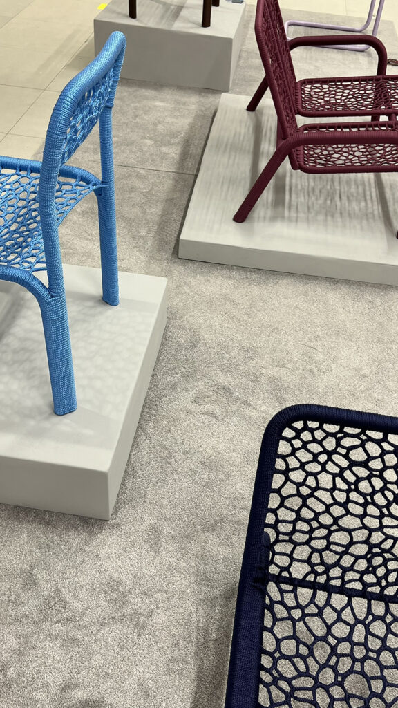 The weaving technique draws inspiration from the invisible labor of traditional net-making, particularly the women in fishing communities who repaired and maintained nets. Through this lens, Take a Seat reflects on care, interconnectedness, and the unseen narratives behind objects. By prioritising craft, the series redefines the value of restoration and invites reflection on collective responsibility.
