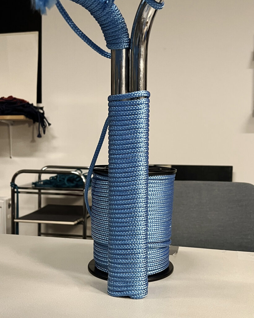 Rope Chair 02 in Sky Blue is one of the pieces of the Take a Seat Collection. It was once an old chair in a blinds production facility, which I inherited from an elderly couple closing their factory after 40 years.