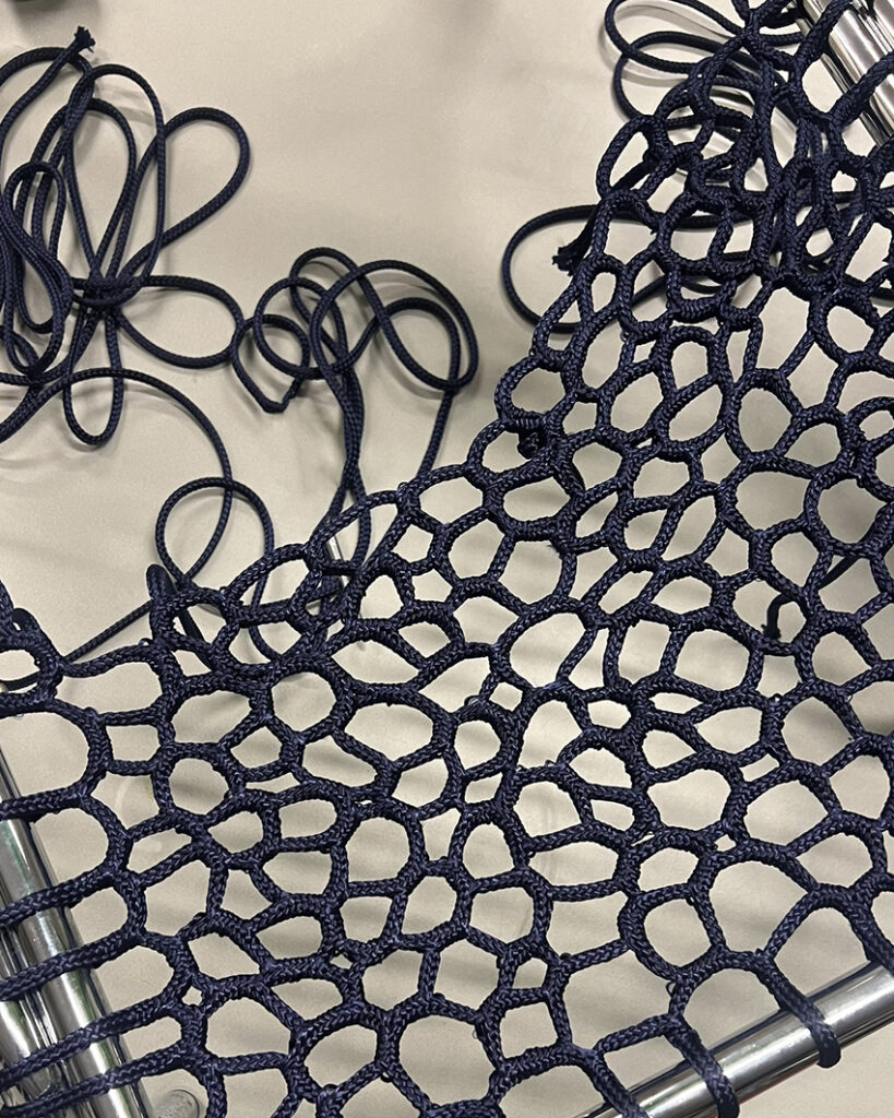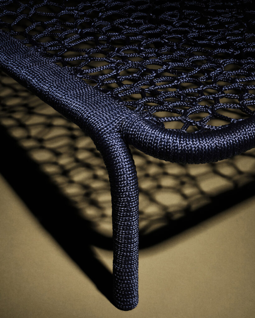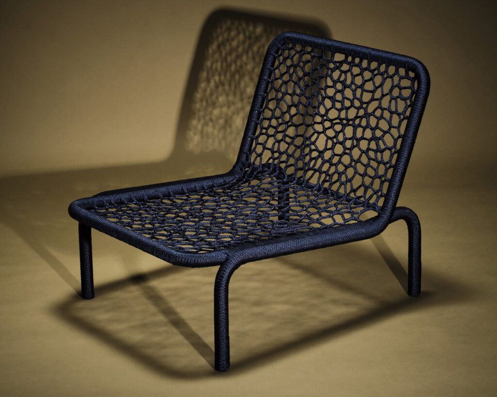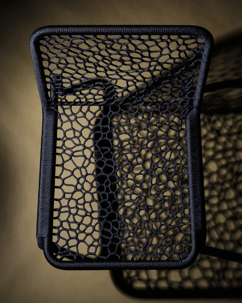 The weaving technique draws inspiration from the invisible labor of traditional net-making, particularly the women in fishing communities who repaired and maintained nets. Through this lens, Take a Seat reflects on care, interconnectedness, and the unseen narratives behind objects. By prioritising craft, the series redefines the value of restoration and invites reflection on collective responsibility.