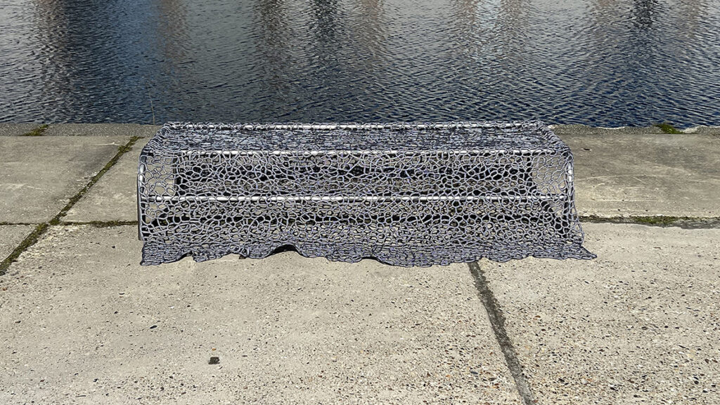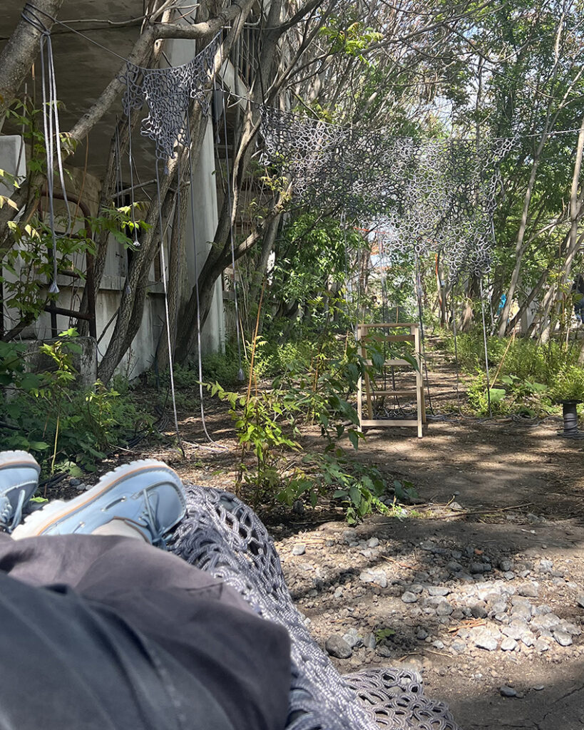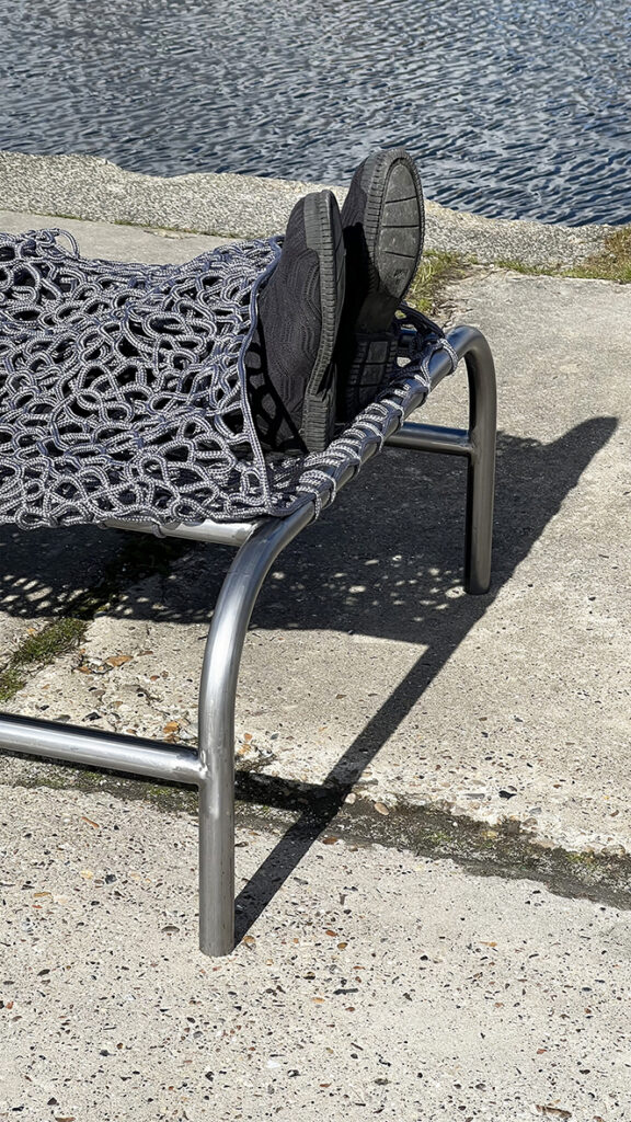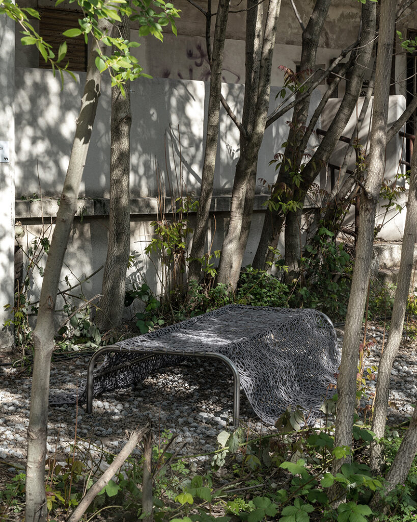 I Would Prefer Not To gives space for exploration of this theme in a form of a daybed made of a metal frame and hand-woven net. In a world where instant gratification is often the norm, the slow and deliberate process of weaving serves as a reminder to slow down and appreciate the journey. The weaving process of the net does not follow any predetermined patterns, valuing intuition over efficiency.