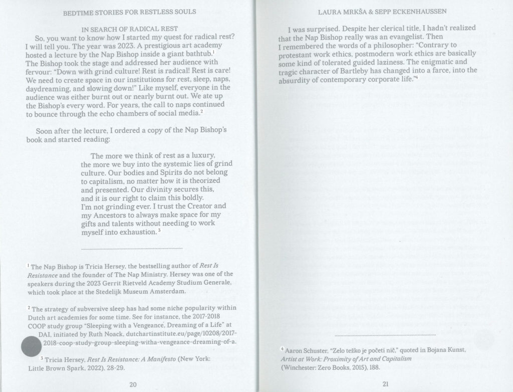 “Bedtime Stories for Restless Souls,” is a contribution to the publication Nocturnalities, Bargaining Beyond Rest, co-written with Sepp Eckenhaussen.